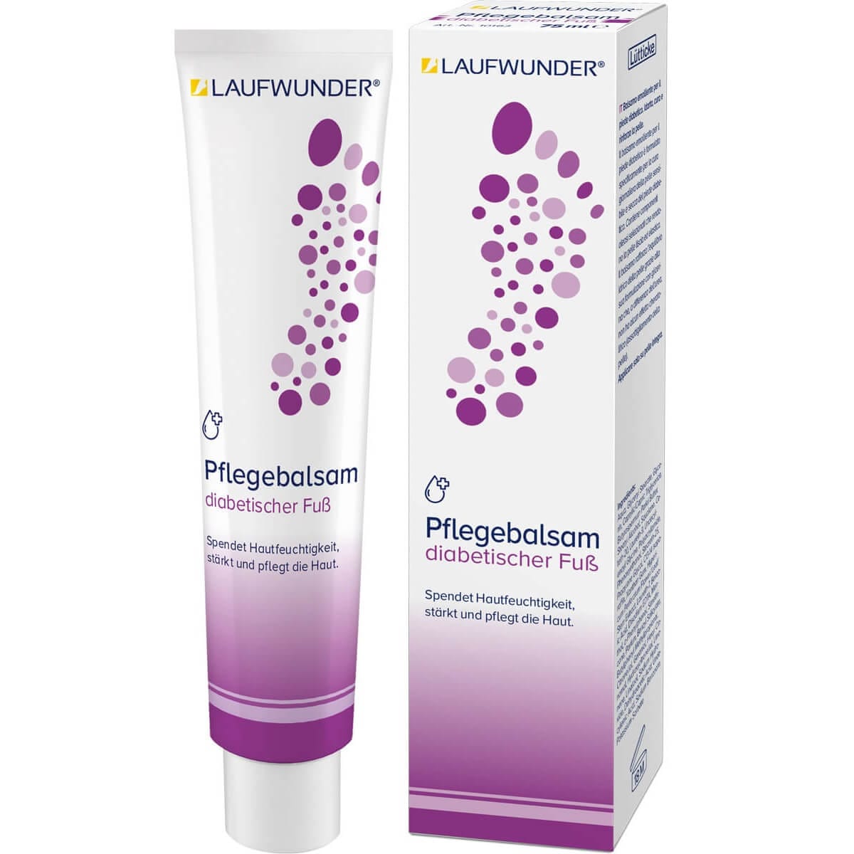 Laufwunder voetbalsem diabetische voet. Verzorgingsbalsem voor de bijzonder gevoelige, droge huid van de diabetische voet. Zijn uitgekiende oliecomponenten maken de huid glad en soepel. De uitgebalanceerde samenstelling van de Laufwunder crème verhindert uitdroging van de voethuid.